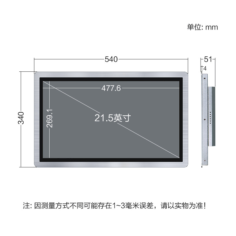 | 21.5 1000nits Flat Bezel 10mm Panel Mount Monitor met gehard glas/ITD21PMG1HBX2 | |